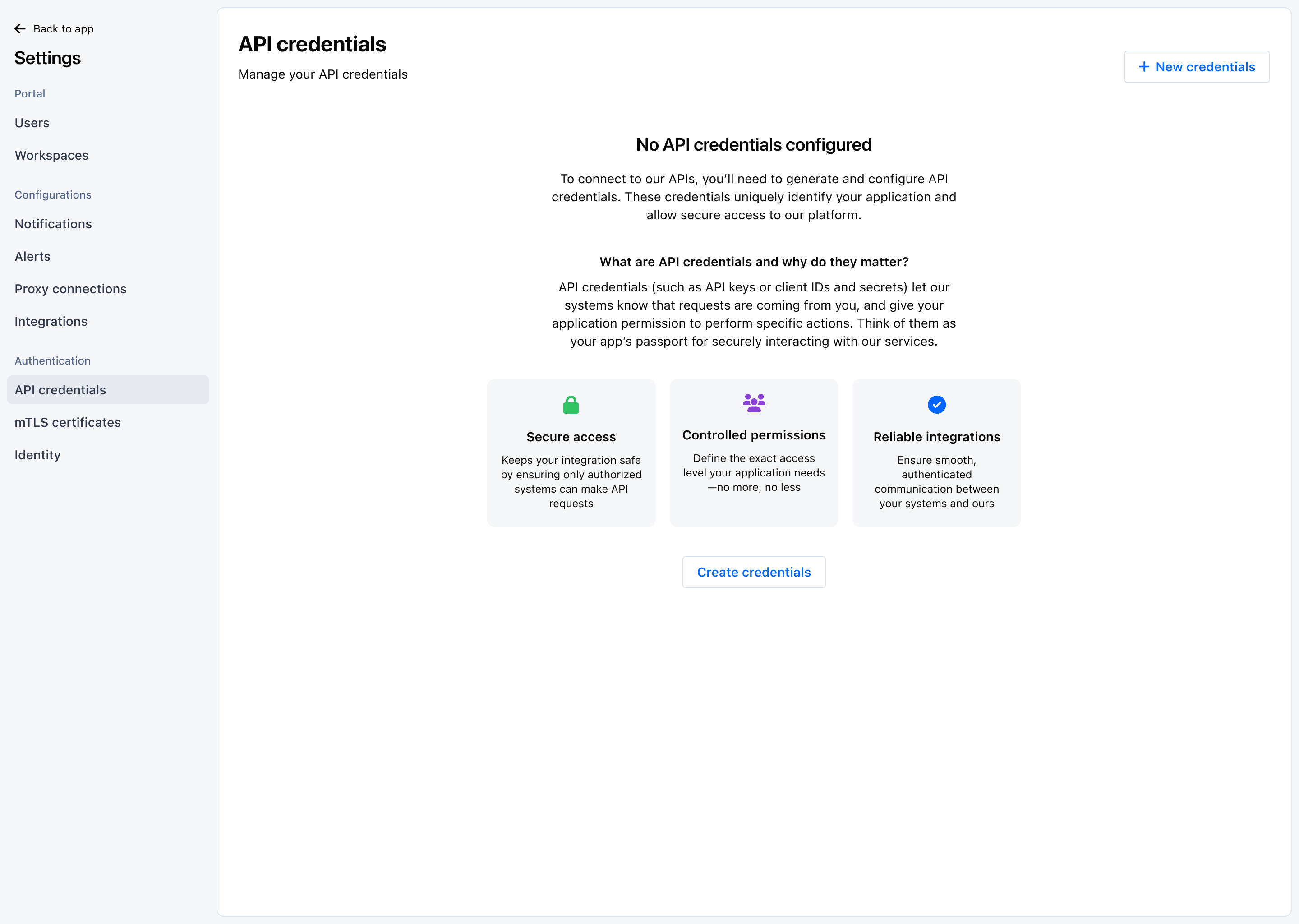 - Admin or Developer role in the Payrails Portal to access the API credentials page. See roles and permissions for details.