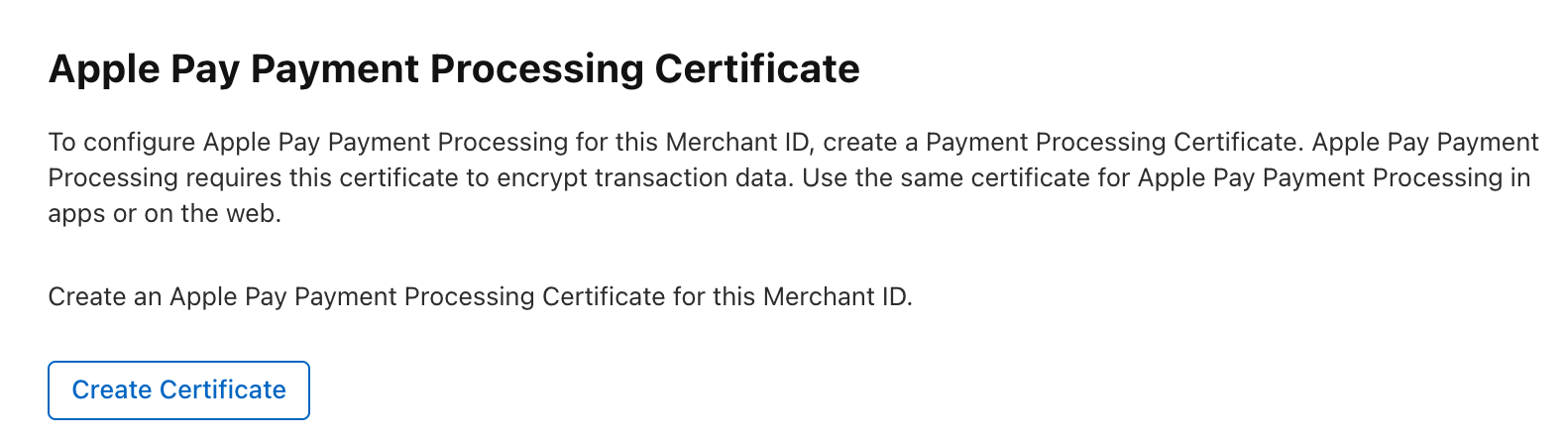 Apple Pay Payment Processing Certificatesection and click onCreate Certificate.