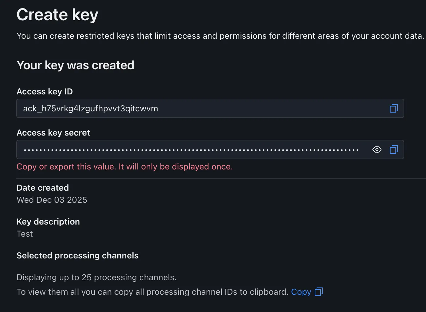 - Locate your Processing Channel ID in the account or processing channel settings.