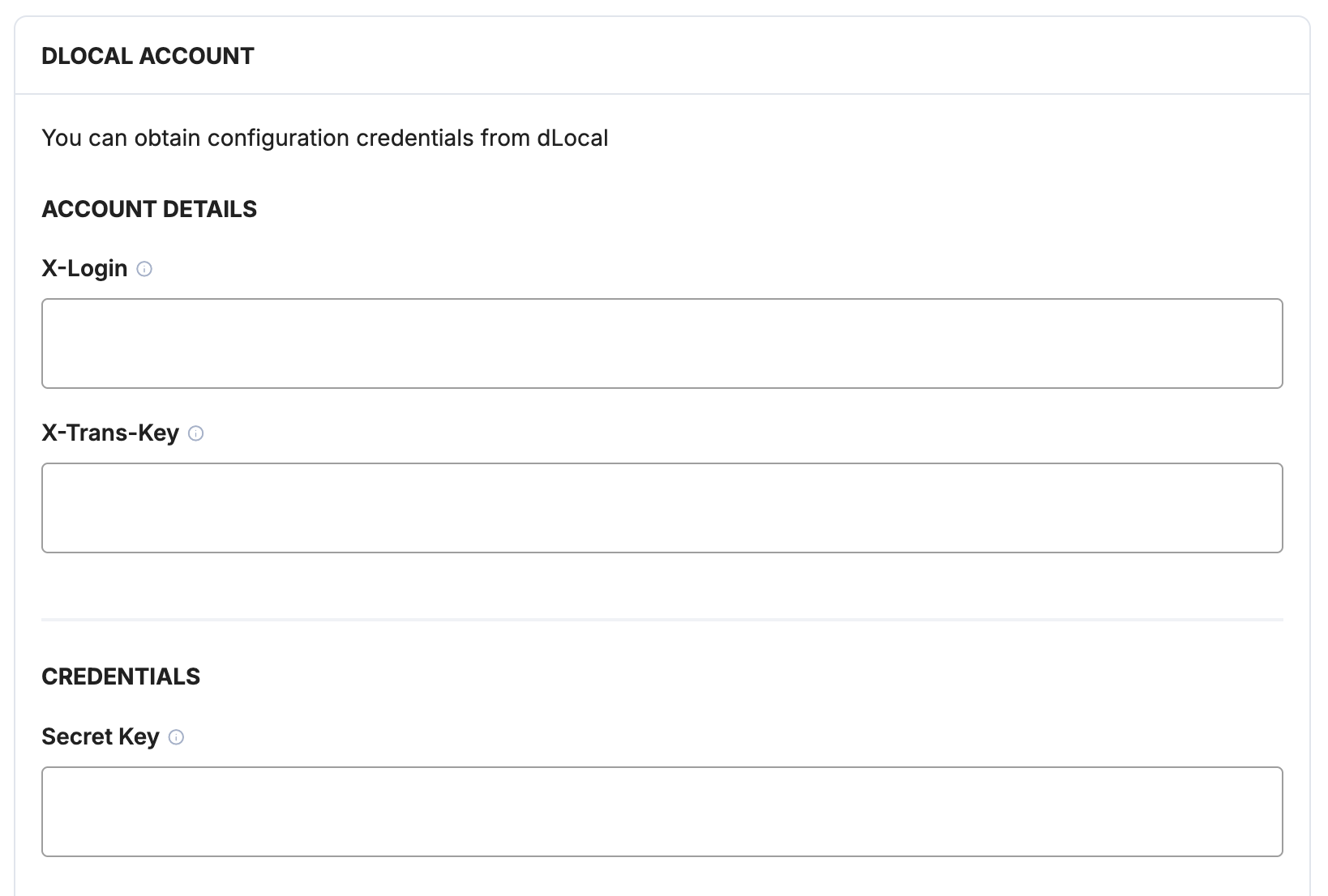 What you’ll need from dLocalBefore you begin, make sure you have access to: