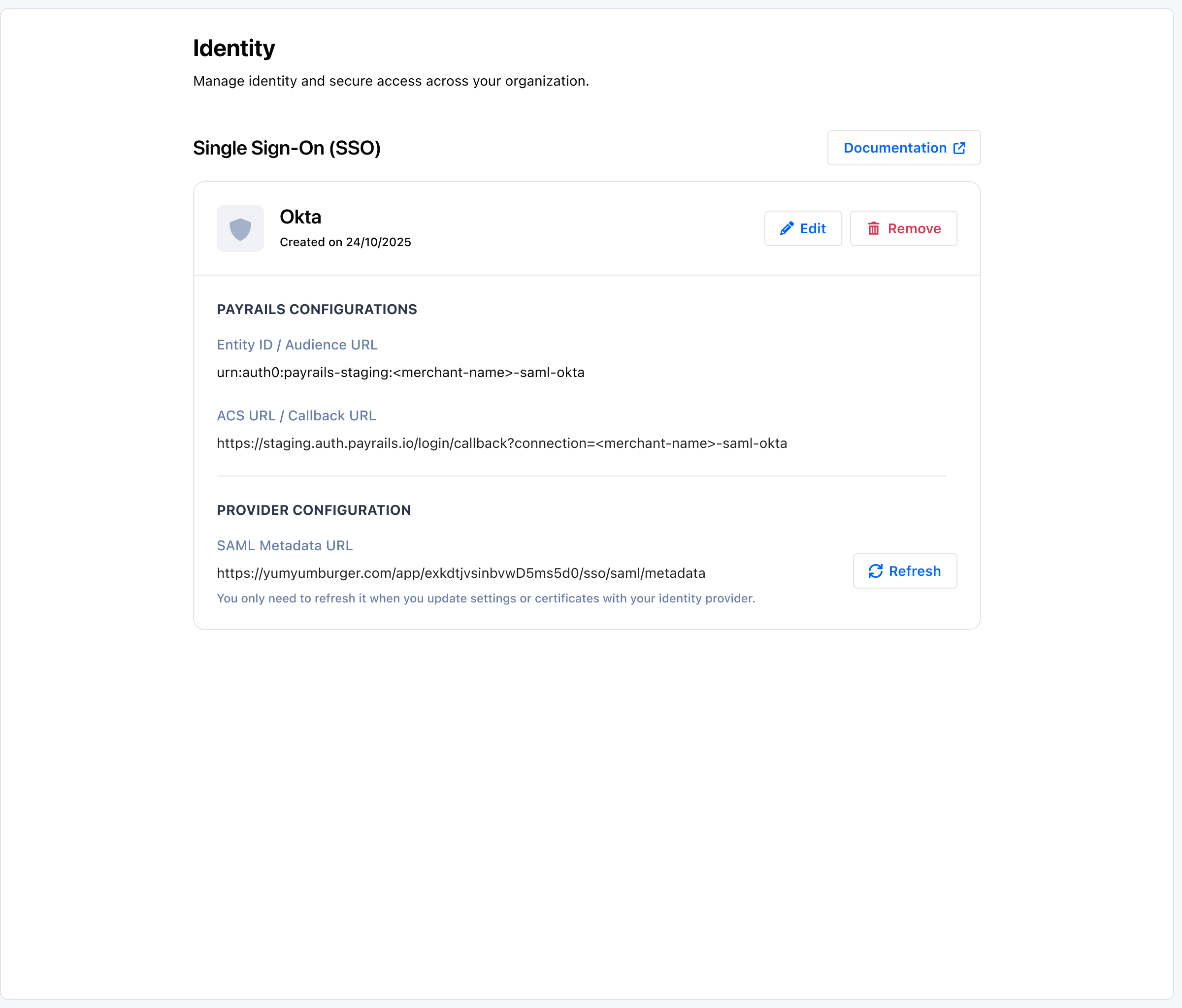 How to configure and maintain SAML SSO in Payrails using your organization’s identity provider.